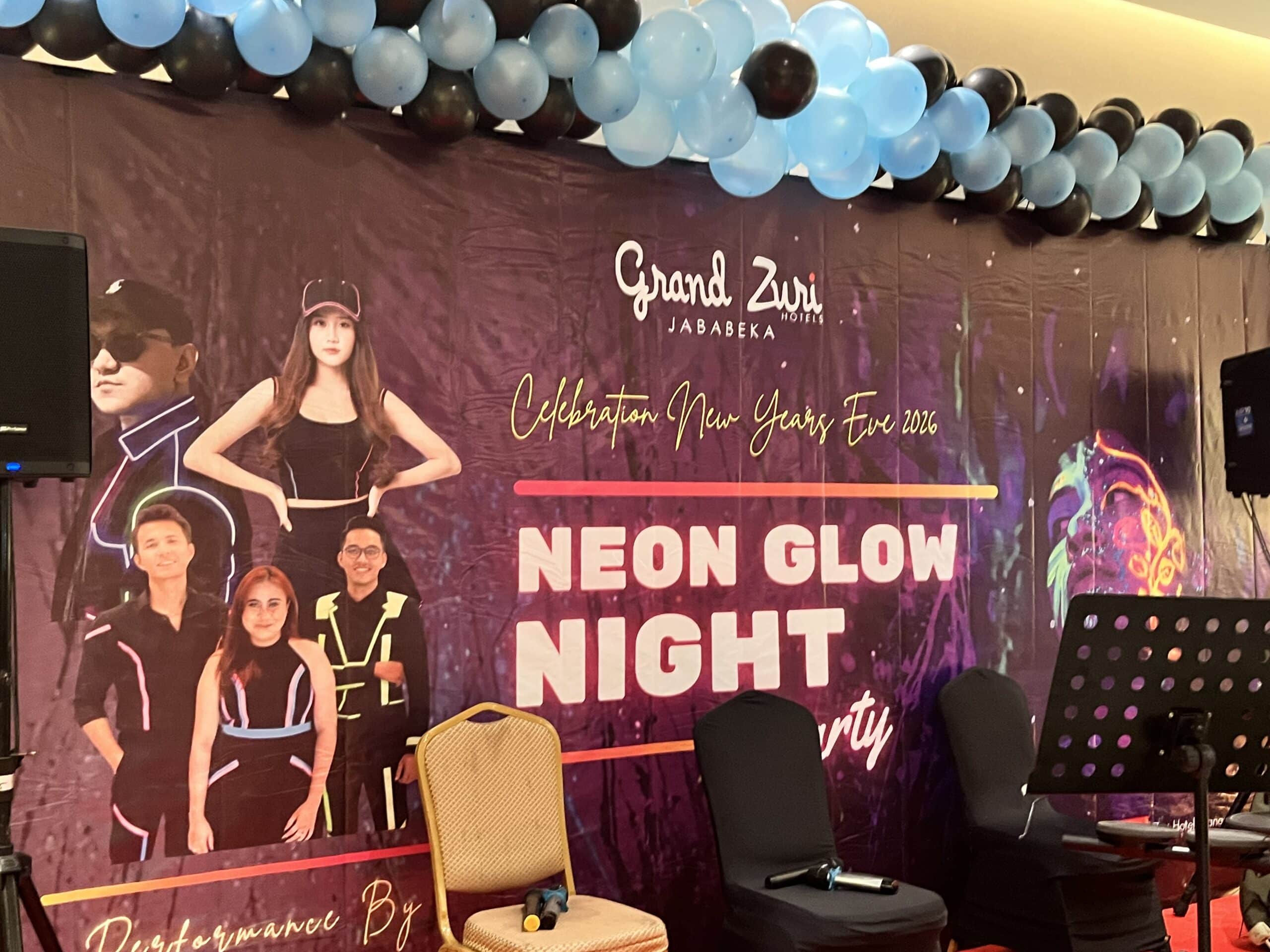 Cikarang – Menutup tahun dengan penuh warna dan semangat, Hotel Grand Zuri Jababeka menghadirkan perayaan malam Tahun Baru yang spektakuler bertajuk “Neon Glow Night Party”. Mengusung konsep modern, energik, dan penuh cahaya, acara ini menjadi pilihan sempurna bagi para tamu yang ingin merayakan pergantian tahun dengan pengalaman berbeda dan berkesan. Nuansa neon yang menyala menghiasi seluruh area acara, menciptakan atmosfer pesta yang meriah dan Instagramable. Perpaduan lampu warna-warni, dekorasi futuristik, serta sentuhan glow in the dark menjadikan malam pergantian tahun terasa lebih hidup dan penuh energi.