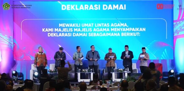 Deklarasi ini dibacakan dalam acara Silaturahmi Nasional Forum Kerukunan Umat Beragama (FKUB) di Serpong, Rabu (6/8/) oleh Kepala Pusat Kerukunan Umat Beragama, Adib Abdushomad, bersama enam perwakilan majelis agama: